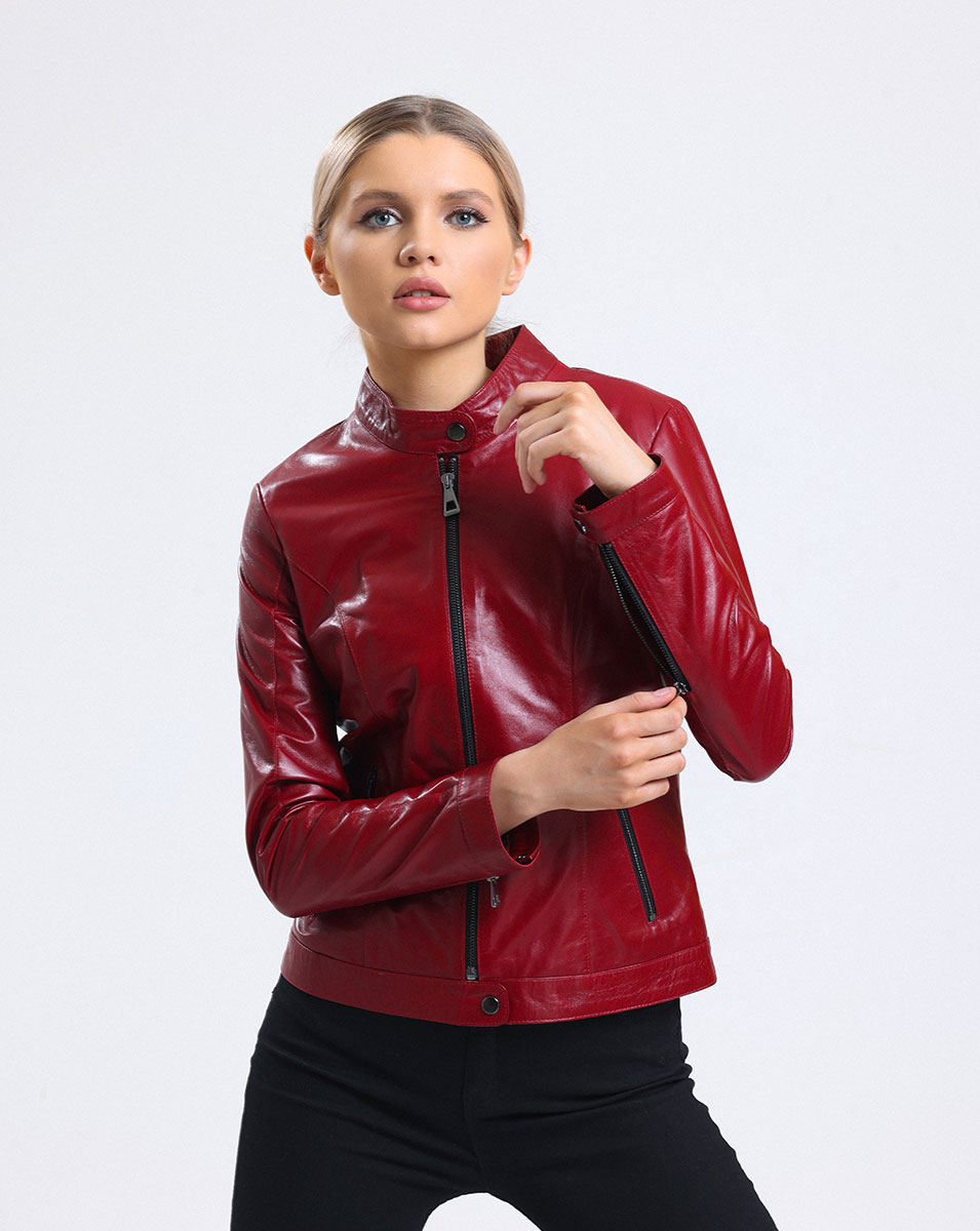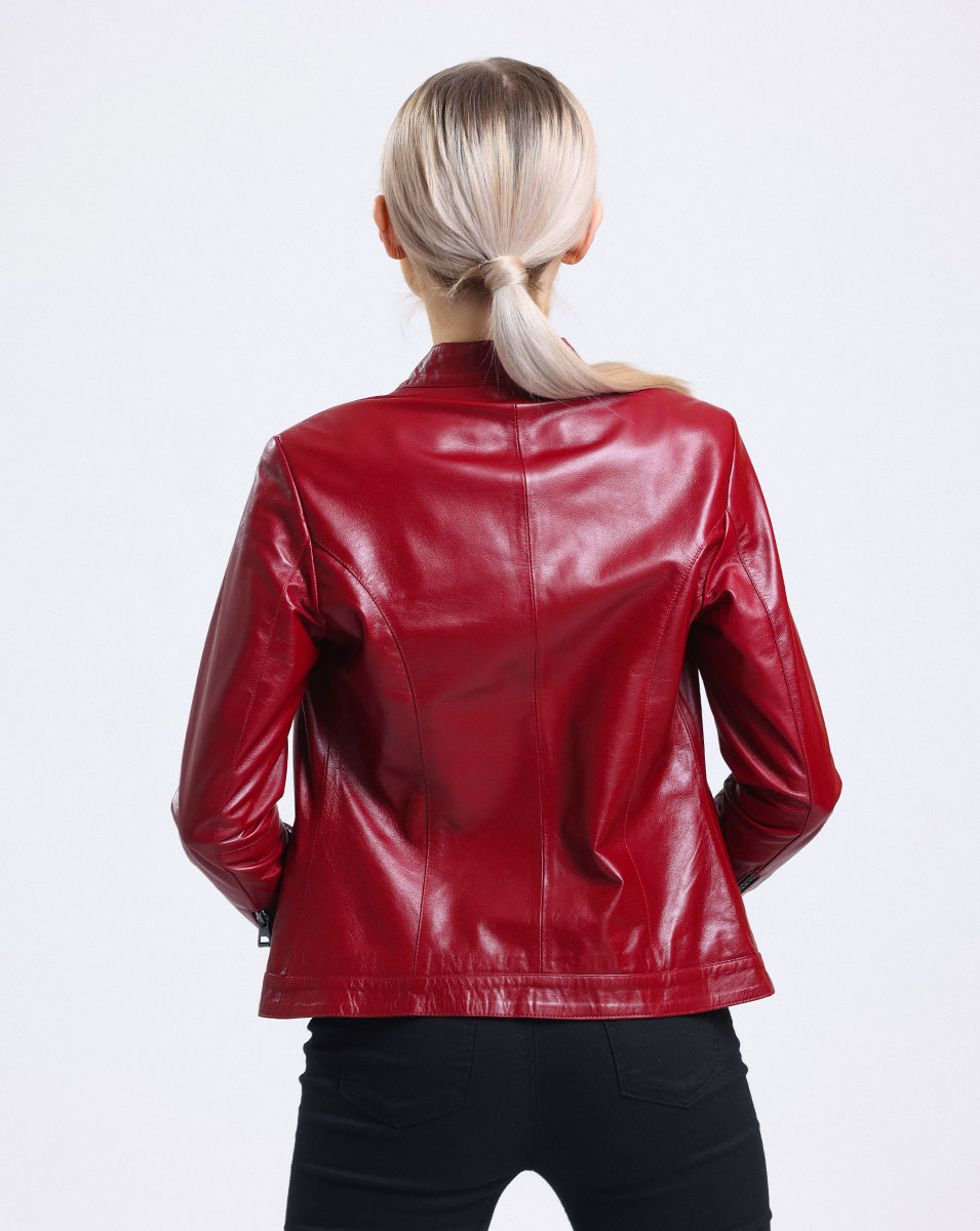 Nottega Nikita Kadın Deri Ceket, İtalya üretimi kuzu derisinin kalitesini modern ve iddialı bir tasarımla buluşturan bir modeldir. Parlak yüzeyi ve canlı kırmızı rengi sayesinde dikkat çekici bir görünüm sunar. Hafif yapısı, konforlu kesimi ve fonksiyonel fermuar detaylarıyla hem günlük kombinlerde hem de şık davetlerde kullanılabilir.